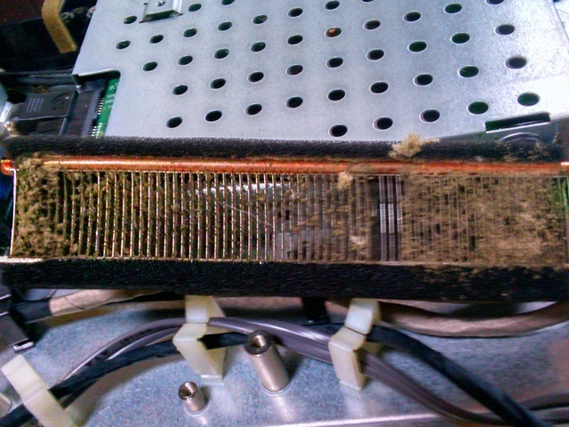 CPUファン・放熱フィンのほか、各端子にもホコリが詰まっています。