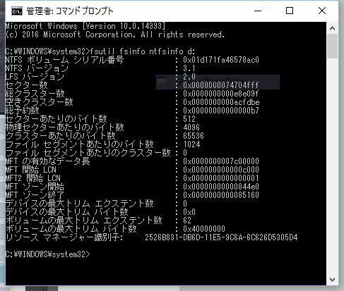 「fsutil fsinfo ntfsinfo c:」