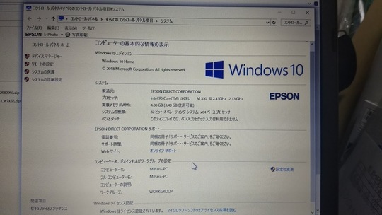 EPSON NJ3300:Windows7 32bit Core i3-330M 2.13GHz搭載モデルです。